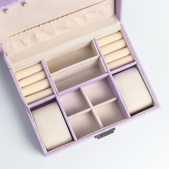 Шкатулка кожзам под часы 2 отделения и бижутерию "Под бархат" сиреневая 8х15,5х20,5 см