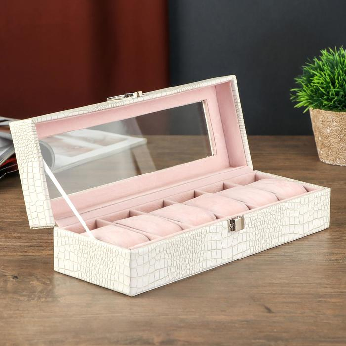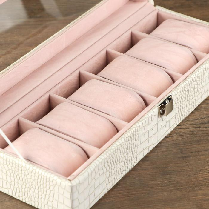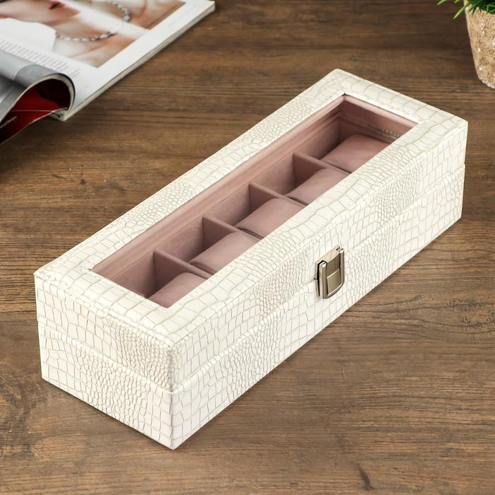 Шкатулка кожзам под часы 6 отделений "Белая с прожилками " 11х30,6х7,5