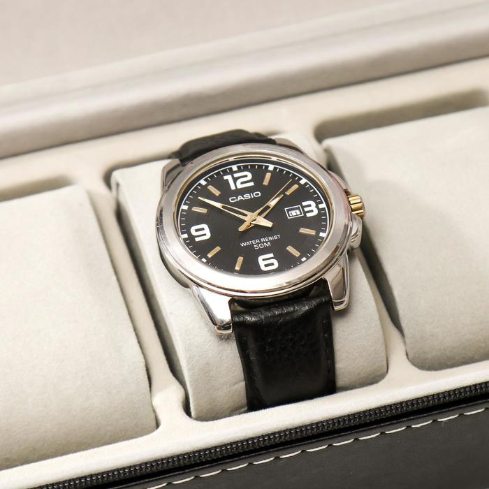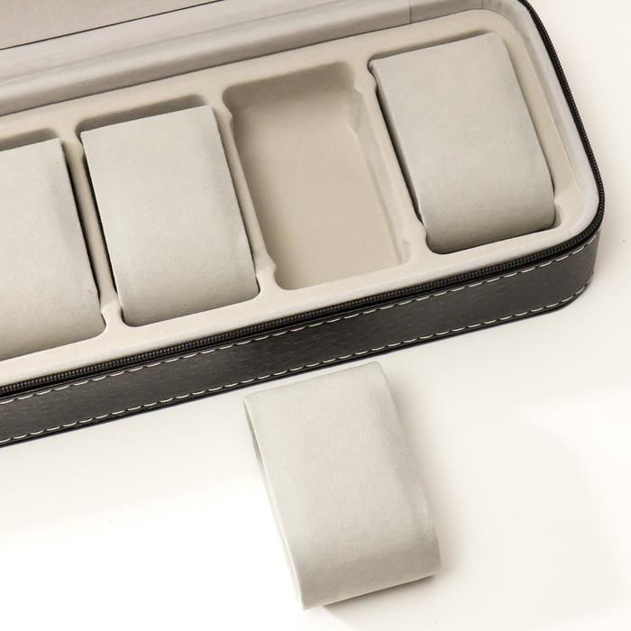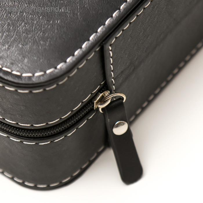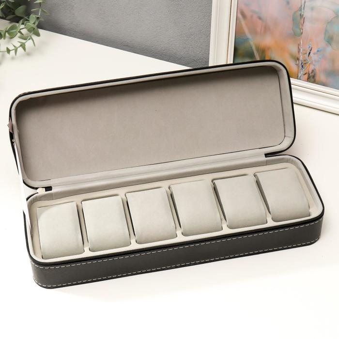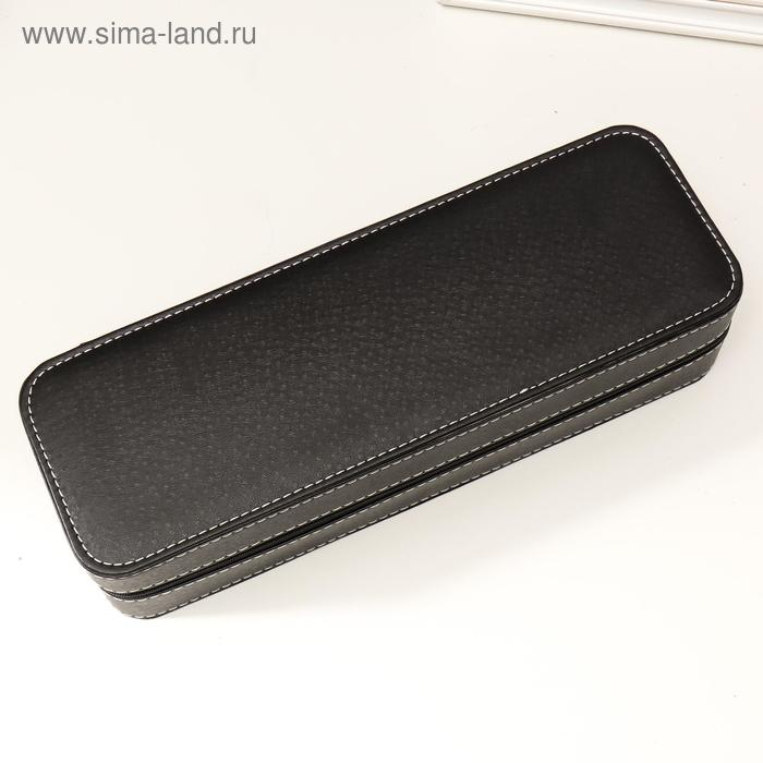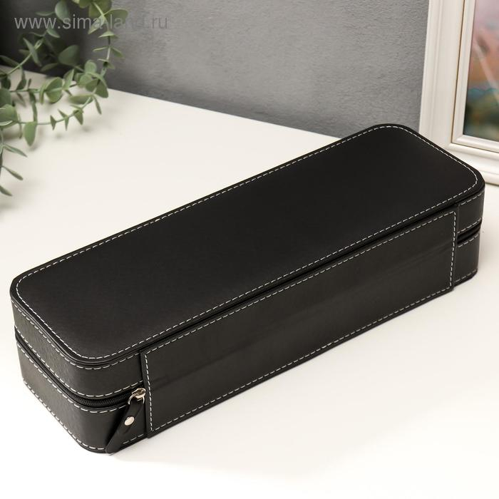 Шкатулка кожзам под часы 6 отделений "Чёрная с белой строчкой" 7,5х33х11 см