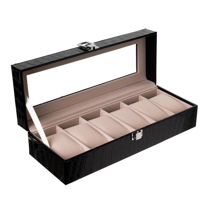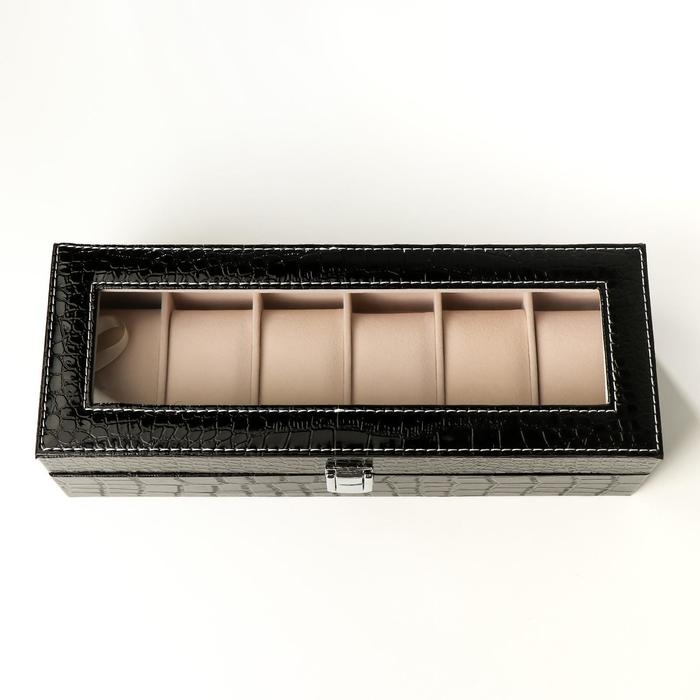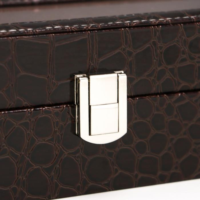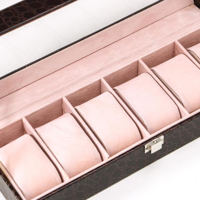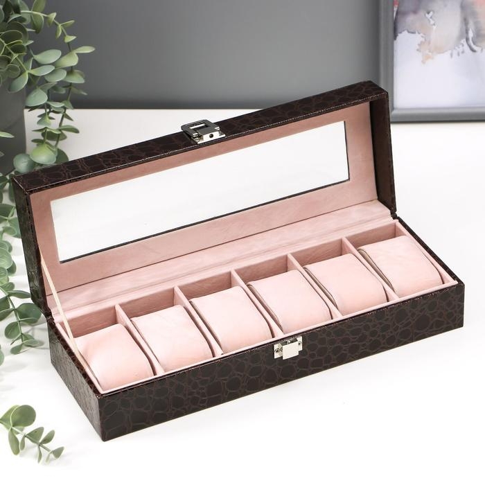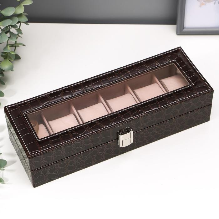 Шкатулка кожзам под часы 6 отделений "Шоколад" 9х31х10 см