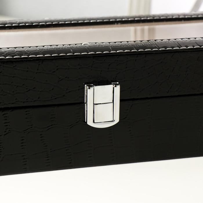 Шкатулка кожзам под часы 10 отделений "Питон чёрный с белой строчкой" 7,5х25,5х20 см
