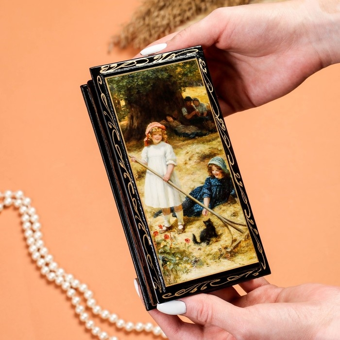 Шкатулка - купюрница «Девушки с котёнком», 8,5×17 см, лаковая миниатюра