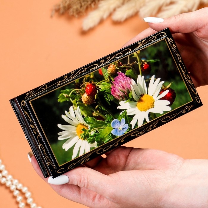 Шкатулка - купюрница «Ромашки с ягодами», 8,5×17 см, лаковая миниатюра