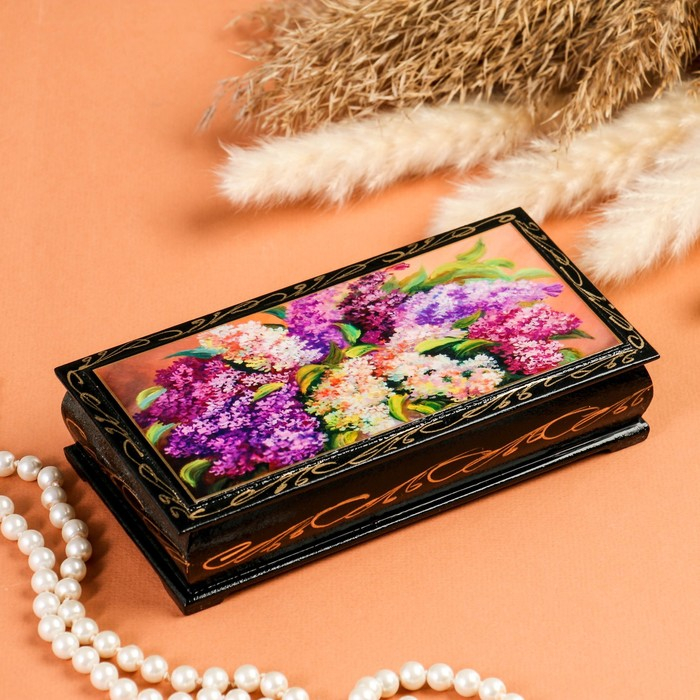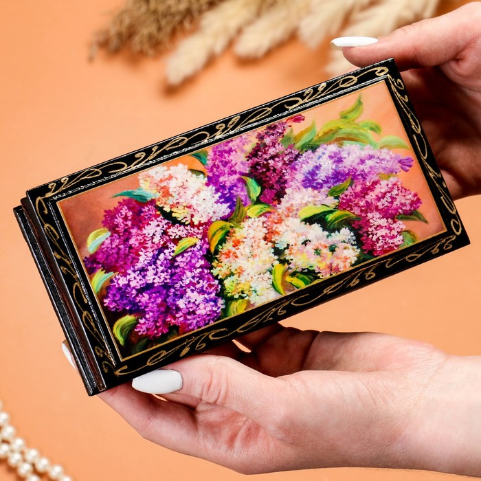 Шкатулка - купюрница «Сирень», 8,5×17 см, лаковая миниатюра
