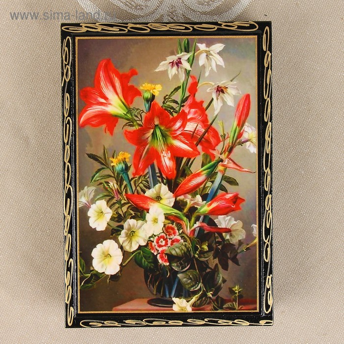 Шкатулка «Лилии в вазе», 11×16 см, лаковая миниатюра