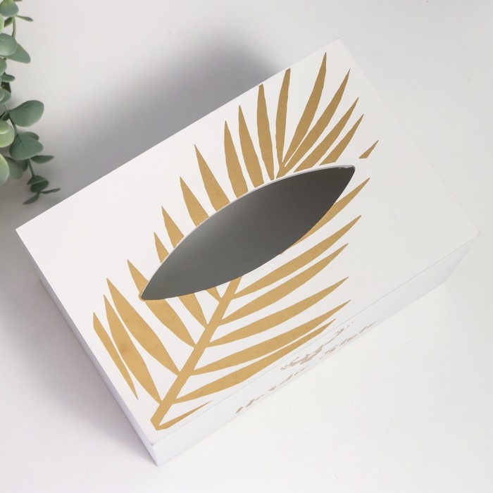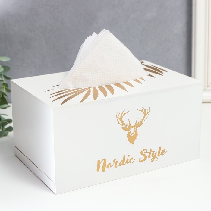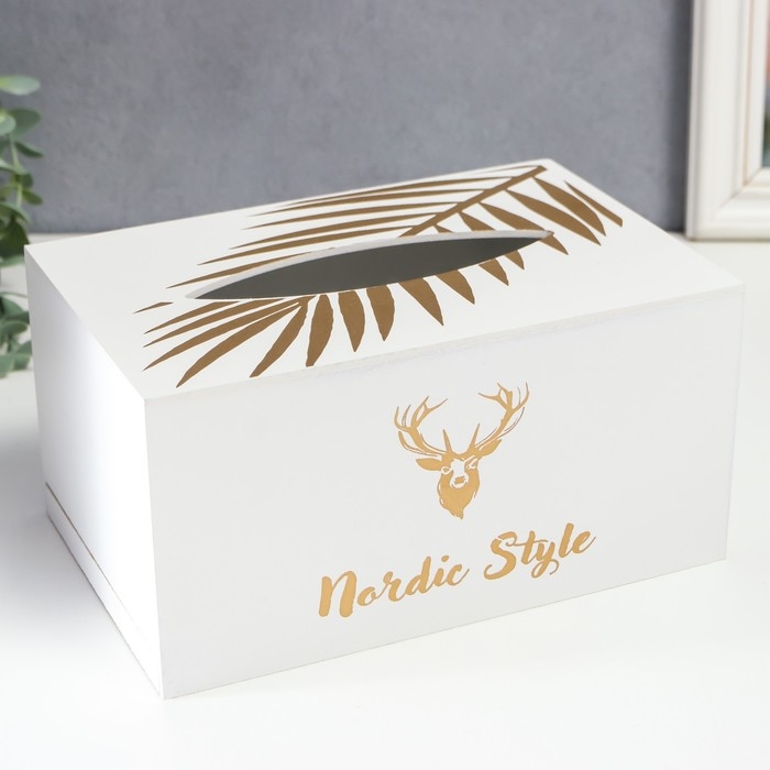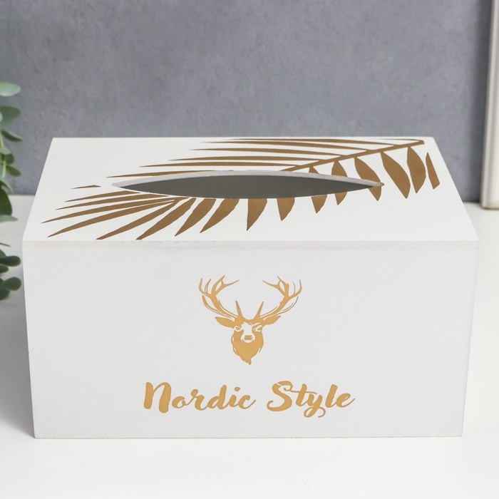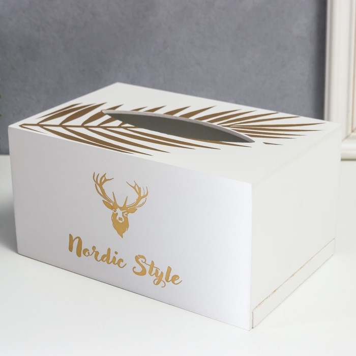 Шкатулка МДФ для салфеток "Золотой олень" белая 10х13х20 см