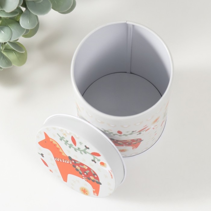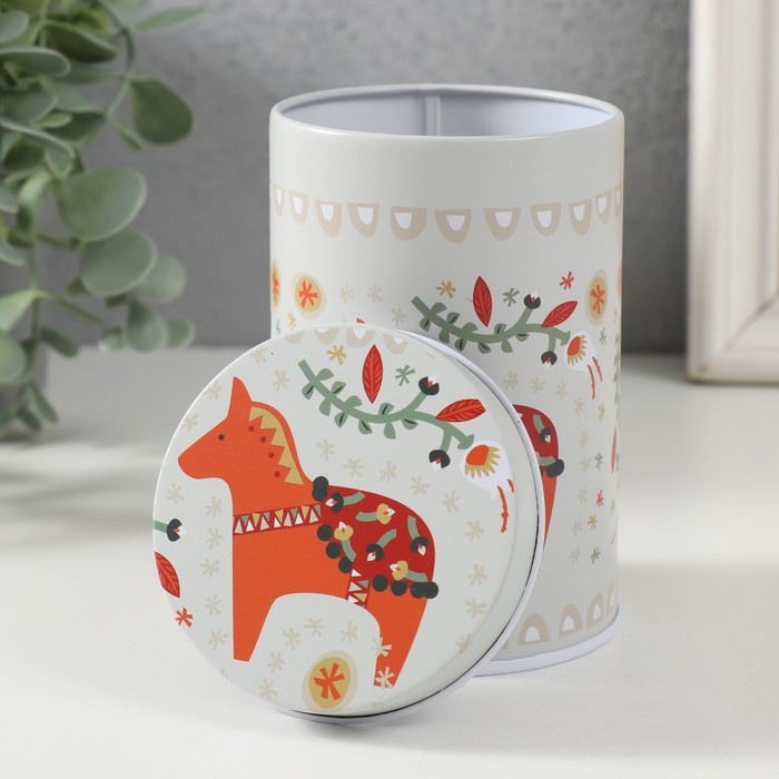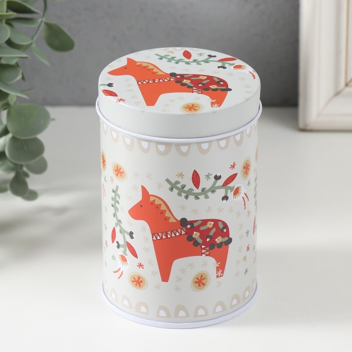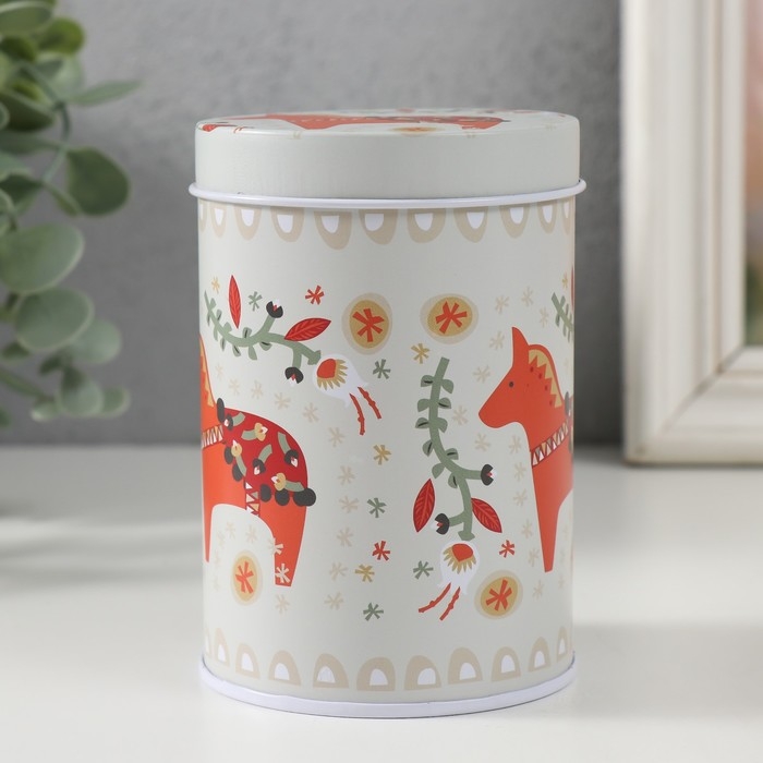 Шкатулка металл цилиндр "Конёк расписной" 7,5х7,5х11 см