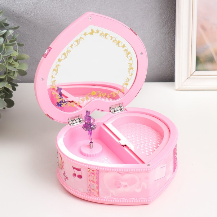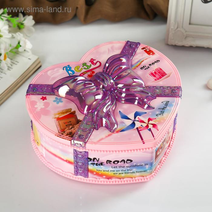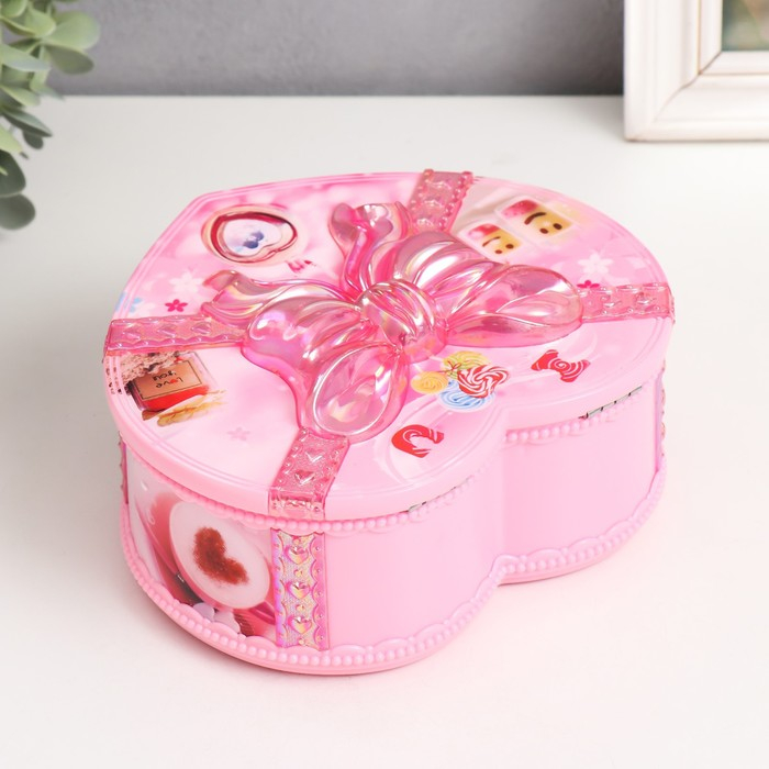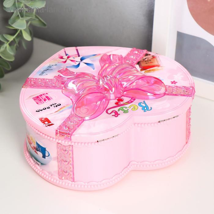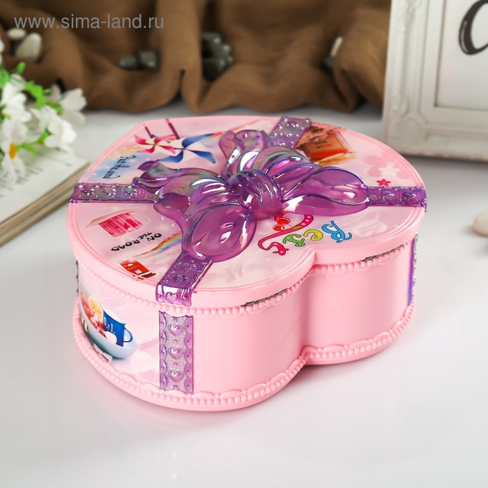 Шкатулка музыкальная механическая "Сердце в банте" 16х18х7,5 см МИКС