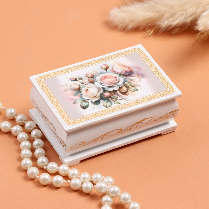 Шкатулка «Нежные пионы», белая, 6×9 см, лаковая миниатюра
