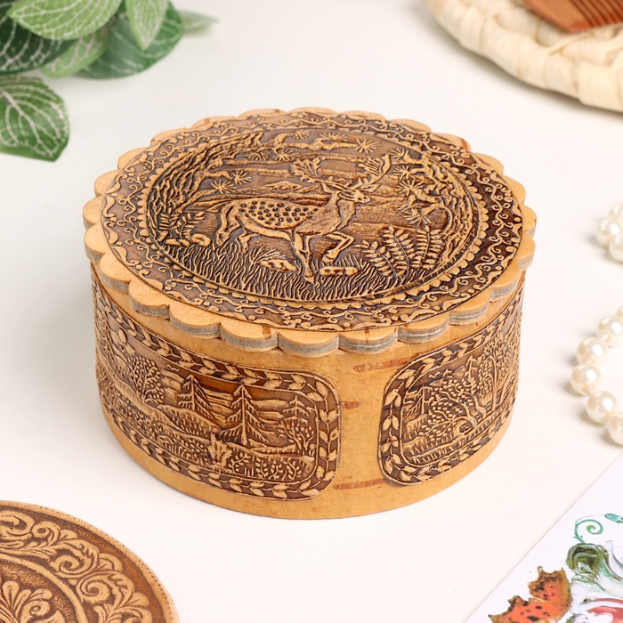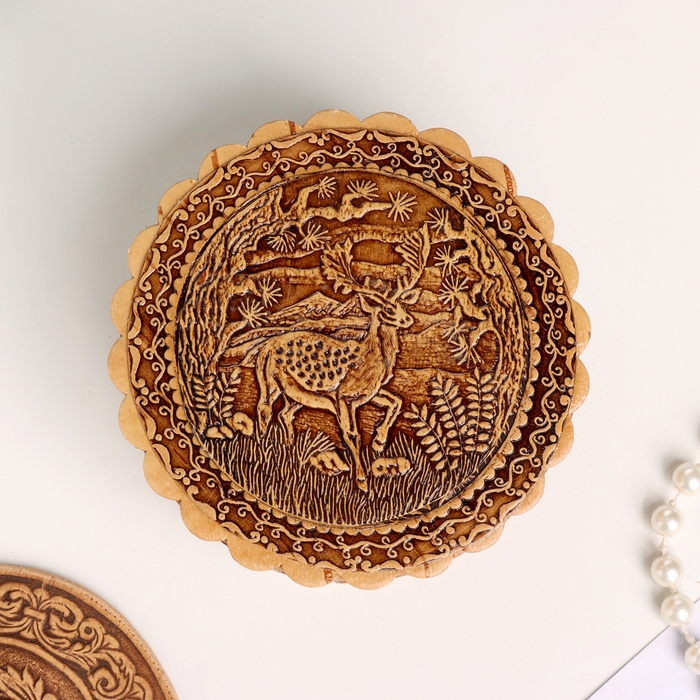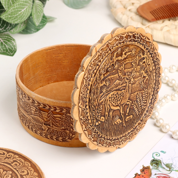Шкатулка "Олень", 100 х 40 мм, береста