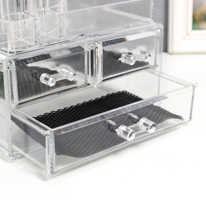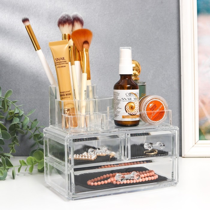 Шкатулка-органайзер пластик 3 ящика прозрачная 16х19х12 см