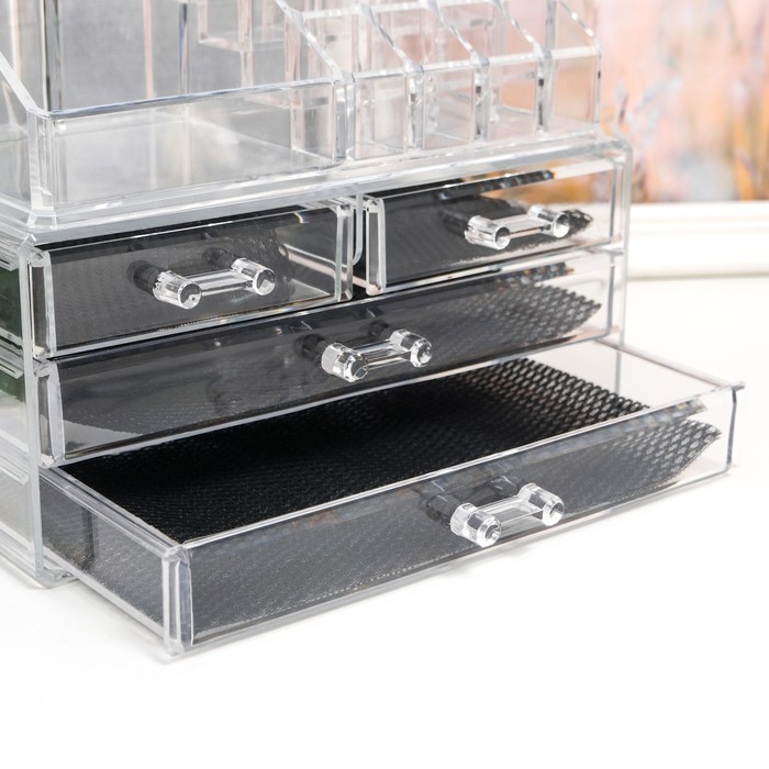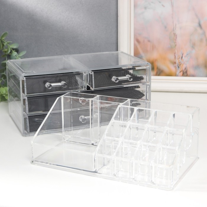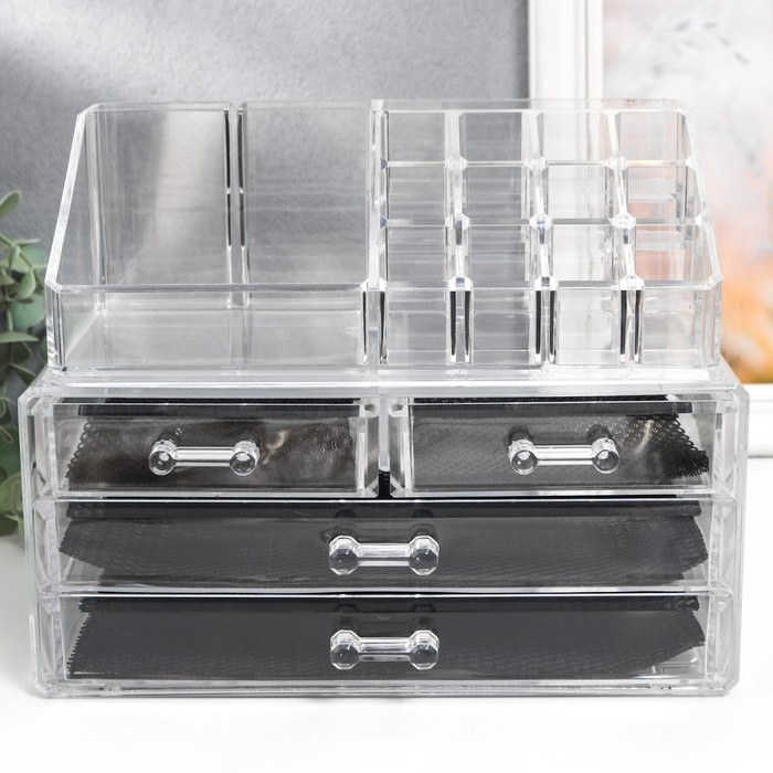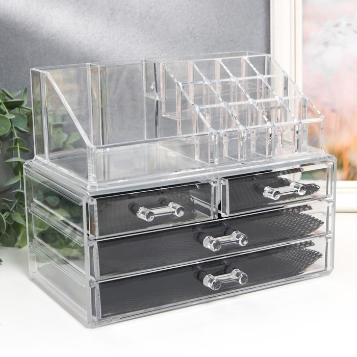 Шкатулка-органайзер пластик 4 ящика прозрачная 18,5х14,5х24 см