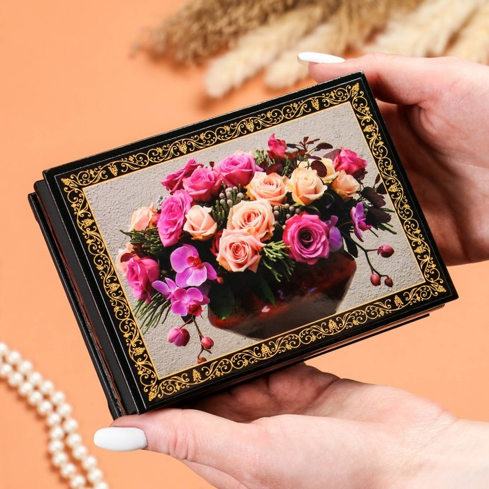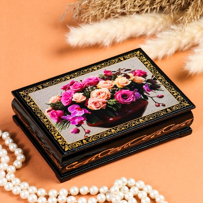 Шкатулка «Орхидеи с розами», 10×14 см, лаковая миниатюра