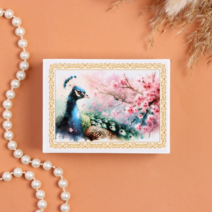 Шкатулка «Павлин», белая, 8×10,5 см, лаковая миниатюра