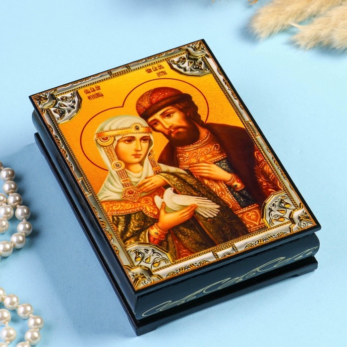 Шкатулка «Петр и Февронья» 10×14 см, лаковая миниатюра