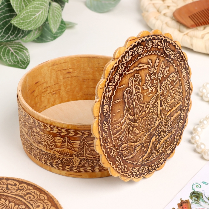 Береста имеет естественный узор и текстуру, что делает каждую шкатулку уникальной и неповторимой.