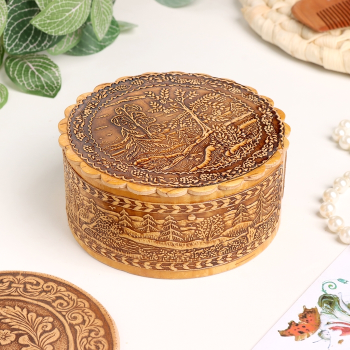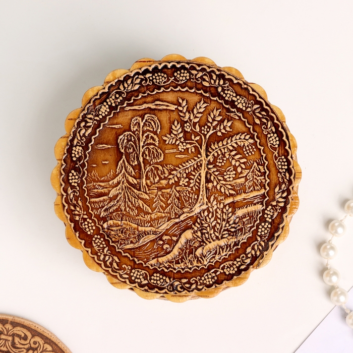 Шкатулка "Пейзаж с деревом", 100 х 40 мм, береста