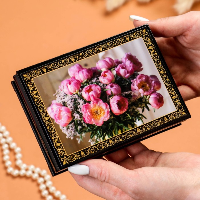 Шкатулка «Пионы», 10×14 см, лаковая миниатюра