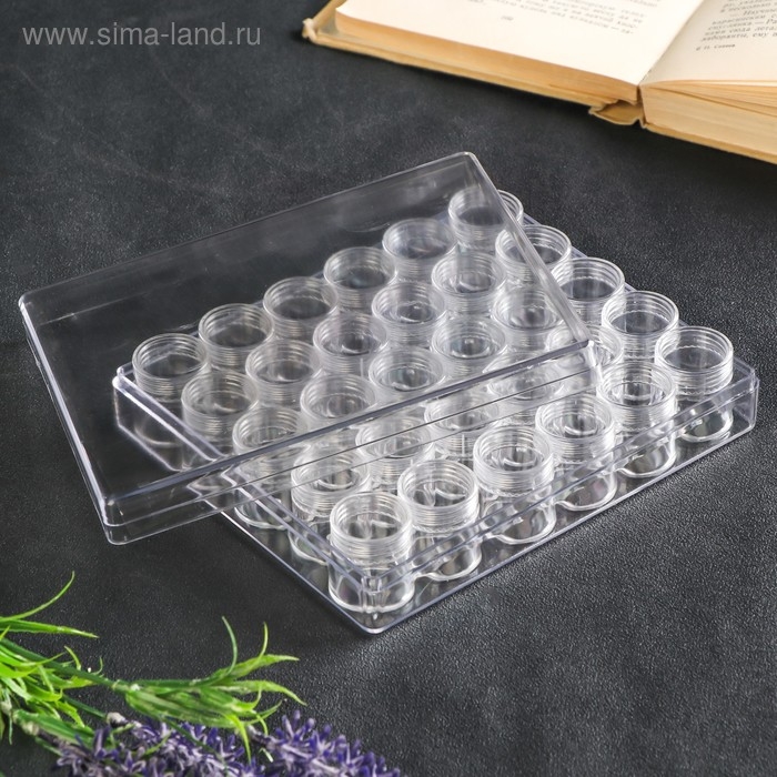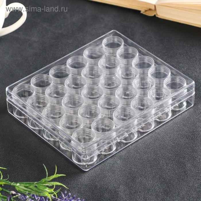 Шкатулка пластик для мелочей "Круг" прозрачная набор 30в1 2,9х2,5х2,5 см 3,5х13,5х16 см