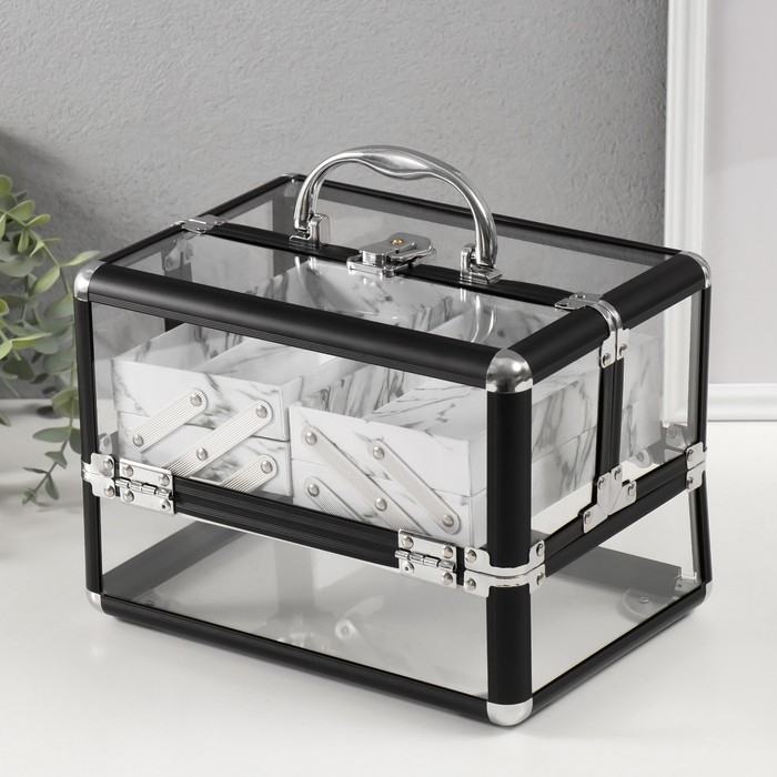 Шкатулка пластик металлокаркас "Чёрная матовая" 18х25х18 см