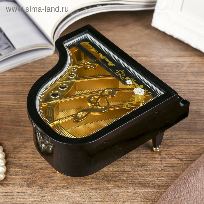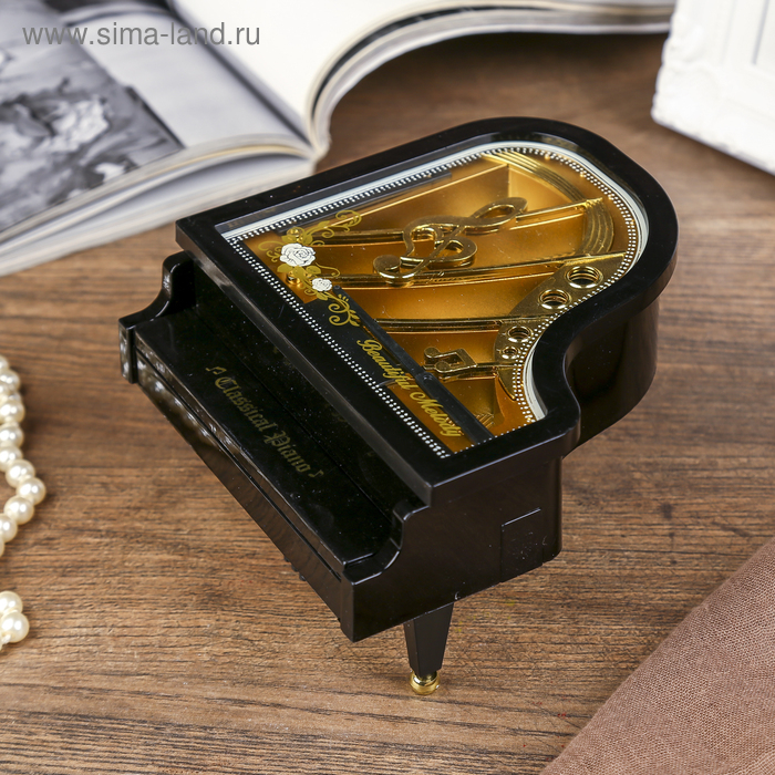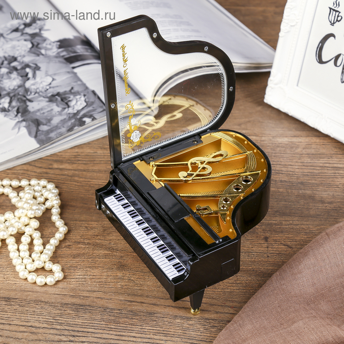 Шкатулка пластик музыкальная механическая "Рояль" МИКС ручной завод 8х15,5х14 см