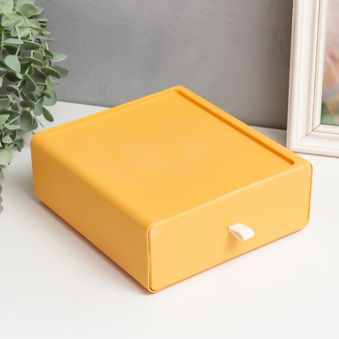Шкатулка пластик "Ящик" жёлтый 19,5х18х5,8 см