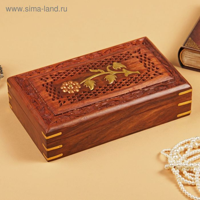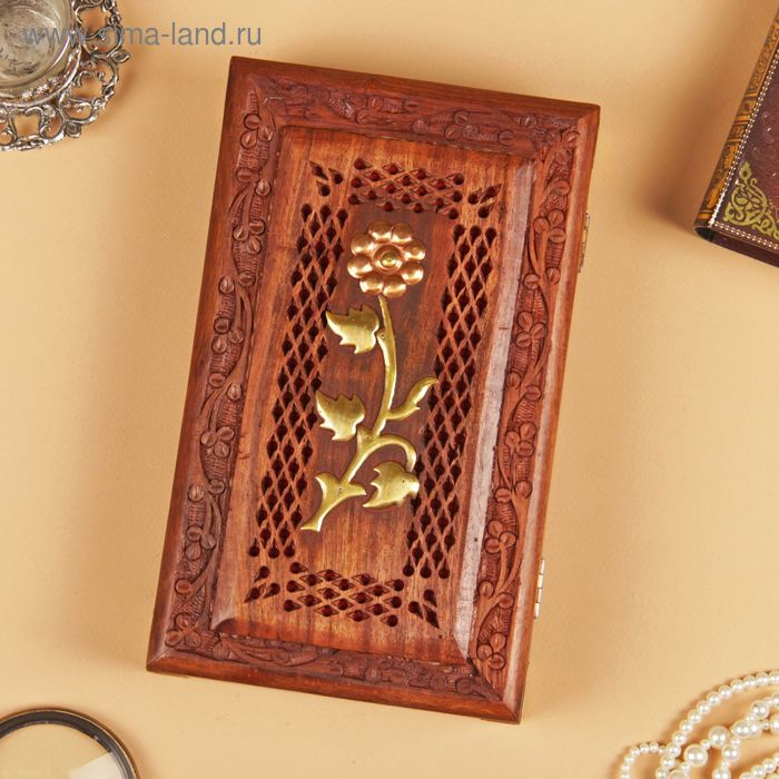 Шкатулка резная "Роза" дерево 7х15х26 см