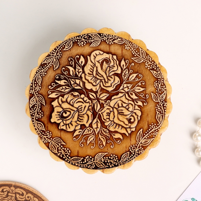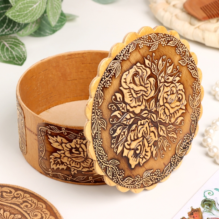 Шкатулка "Розы", 100 х 40 мм, береста