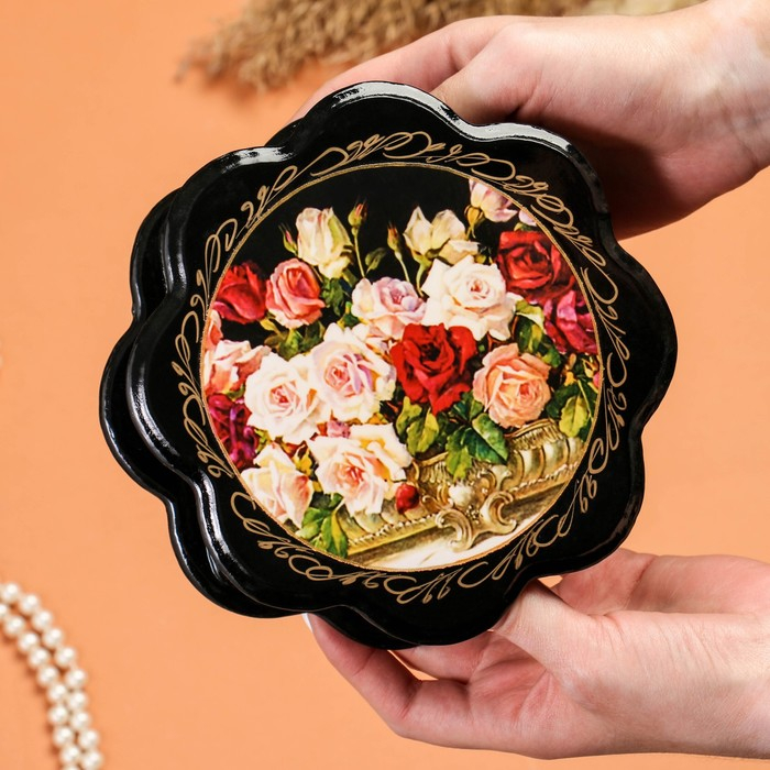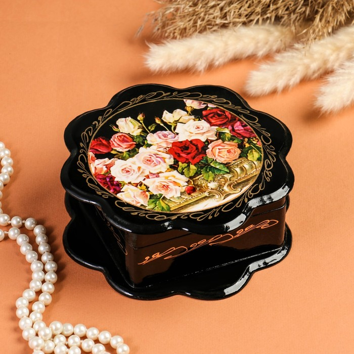 Шкатулка «Розы», 16×16 см, лаковая миниатюра