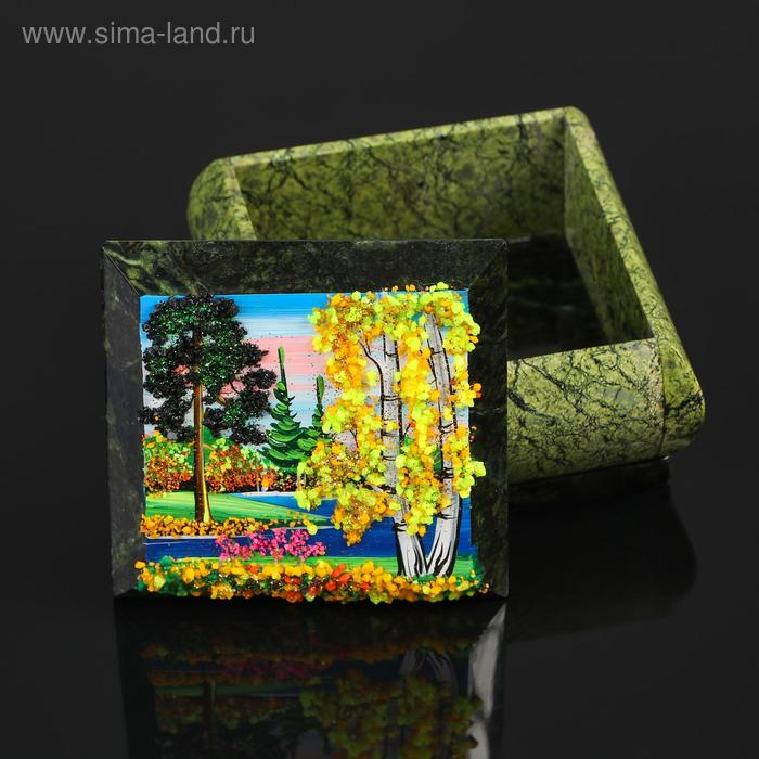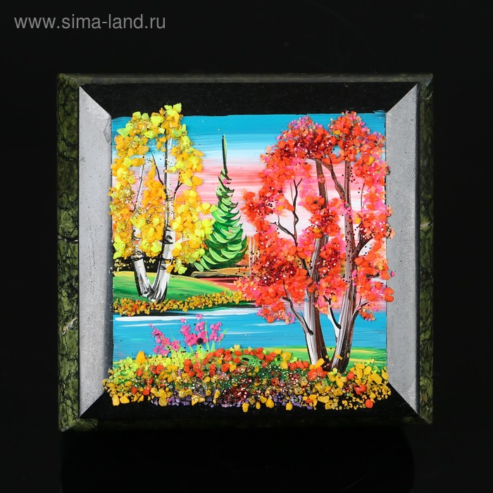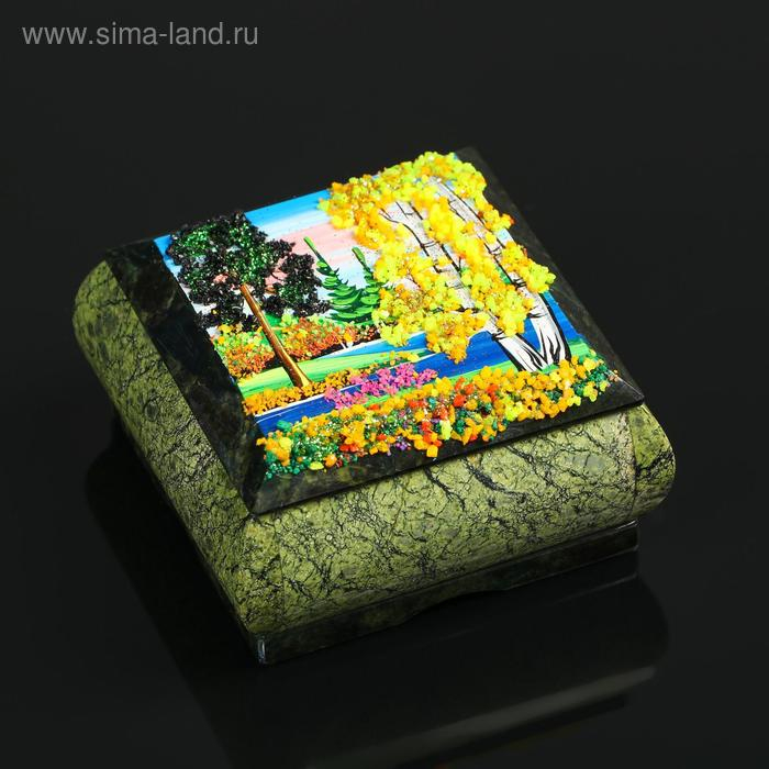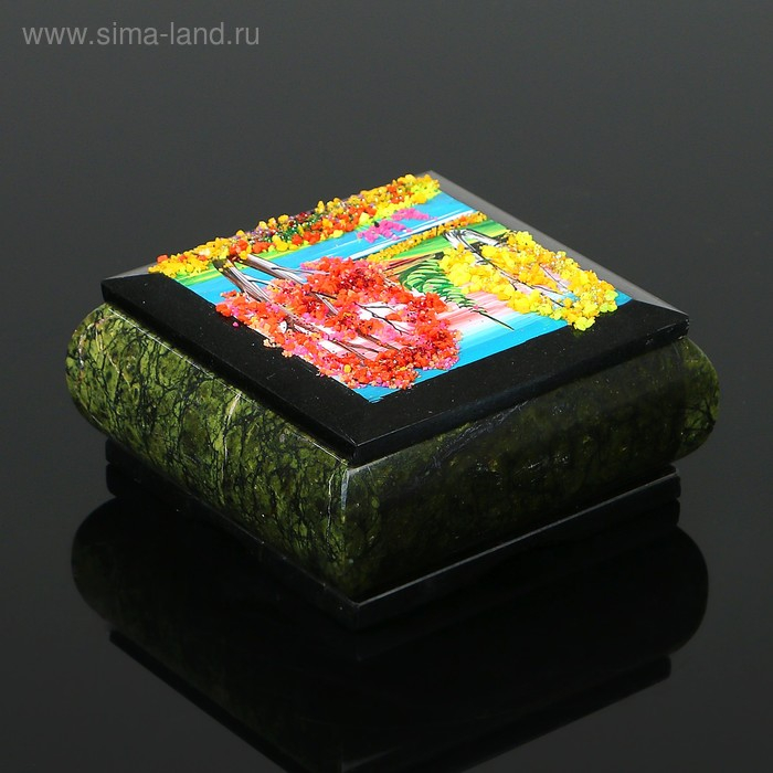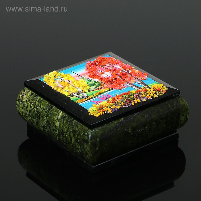 Шкатулка с пейзажем "Осень", каменная крошка, змеевик МИКС