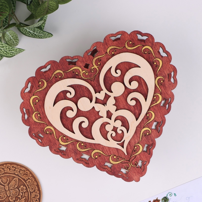 Шкатулка "Сердце", с пожеланием, 21х19х6 см
