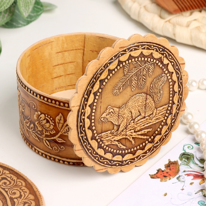 Береста имеет естественный узор и текстуру, что делает каждую шкатулку уникальной и неповторимой.
