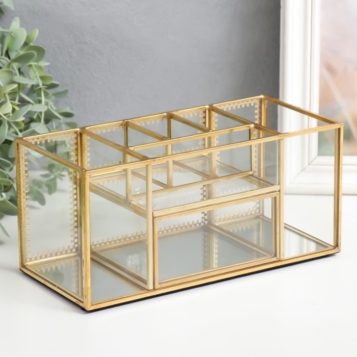 Шкатулка стекло для косметики и украшений с ящичком "Золотой узор" 10,3х10,3х23,3 см