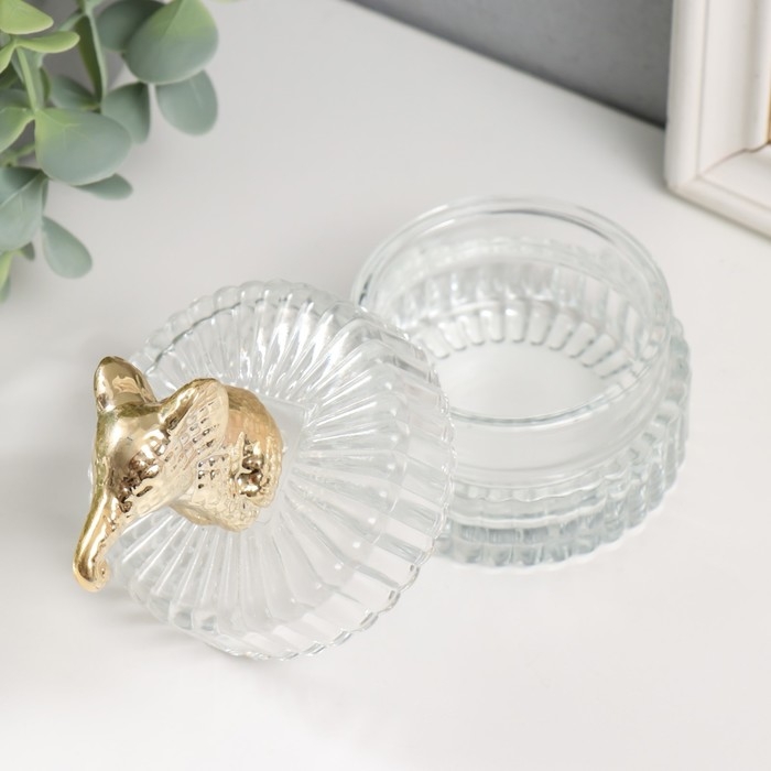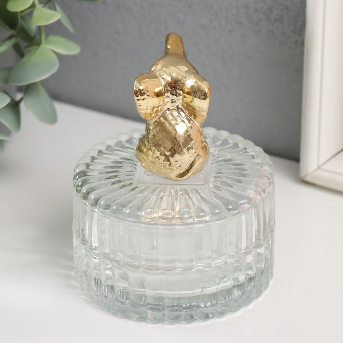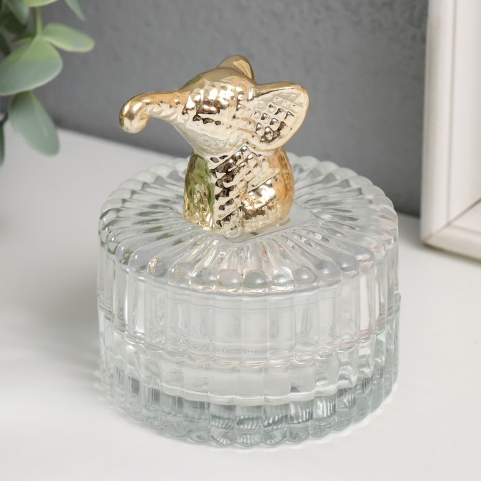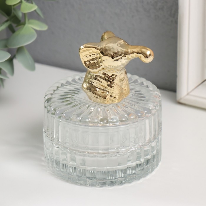 Шкатулка стекло, керамика "Золотой слонёнок" 7,8х7,8х9 см