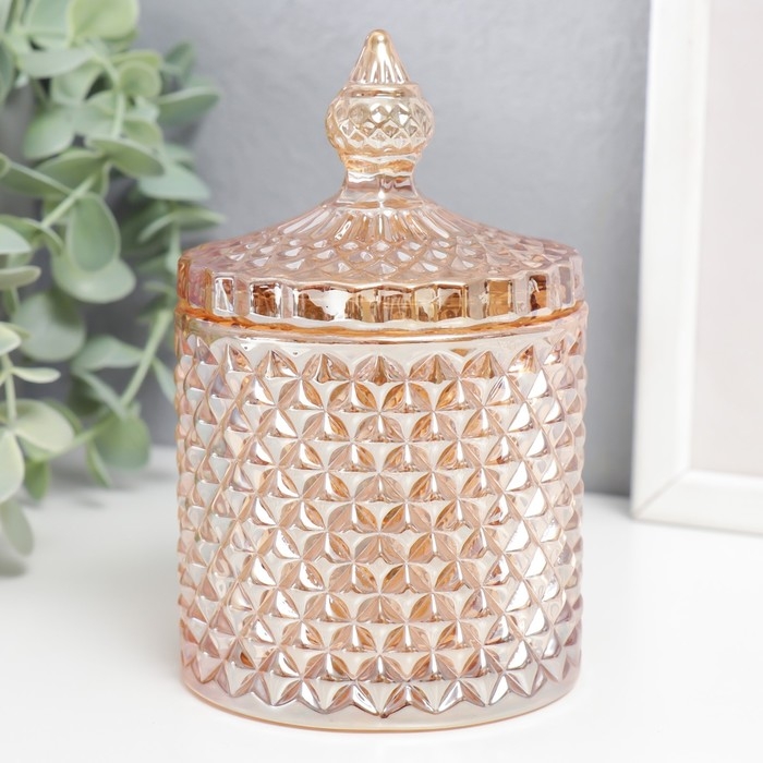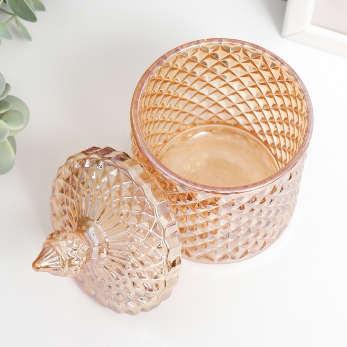 Шкатулка стекло "Ромбы и купол" карамель 14х8,2х8,2 см
