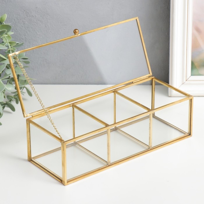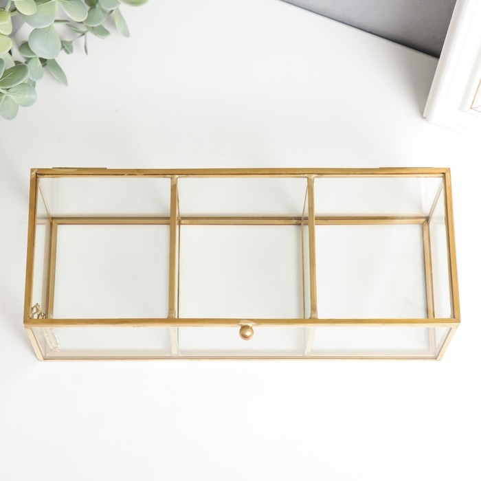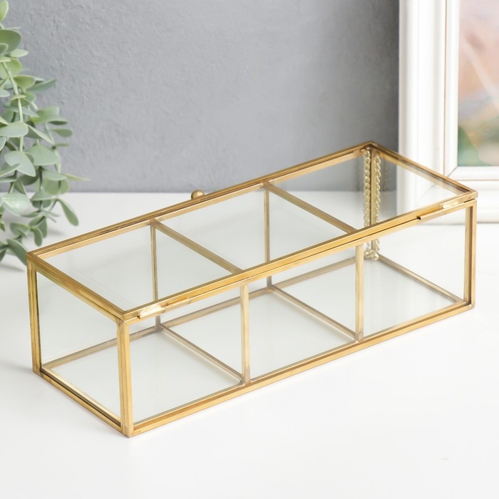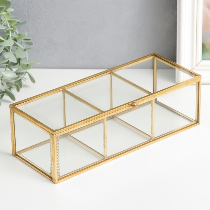 Шкатулка стекло с металлическим каркасом "3 деления" золото 7х9х23 см
