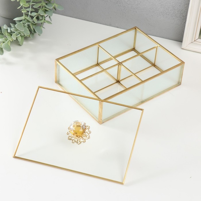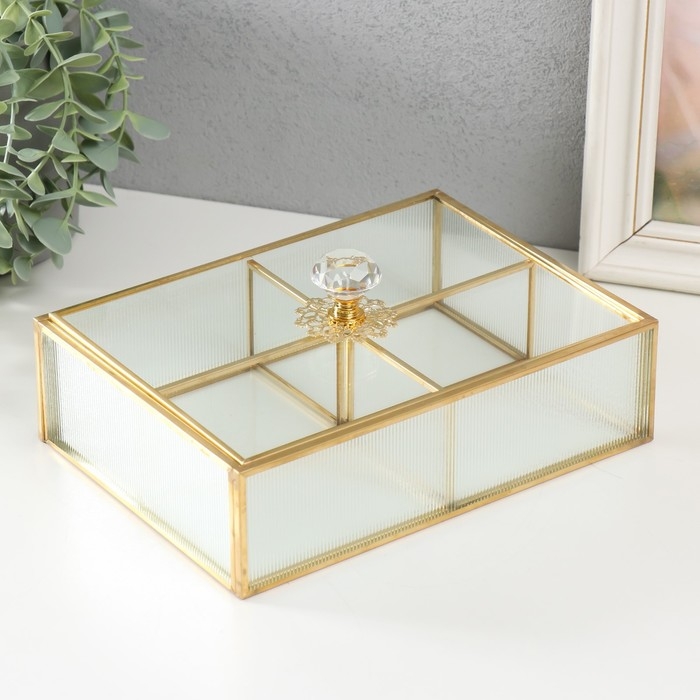 Шкатулка стекло с металлическим каркасом "Кристалл" прозрачная рябь 16,1х22,1х8,5 см