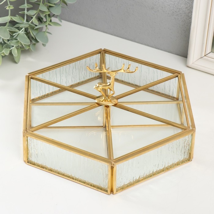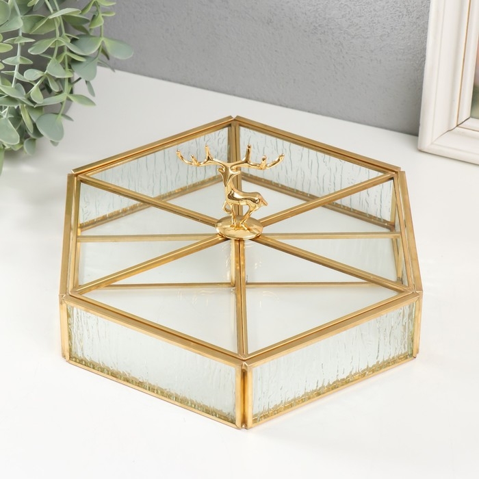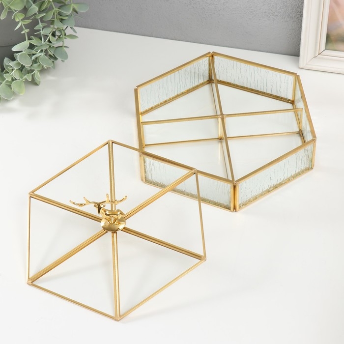 Шкатулка стекло с металлическим каркасом "Золотой олень" многогранник прозр 25х22х11,5 см