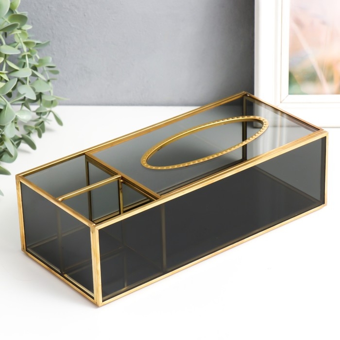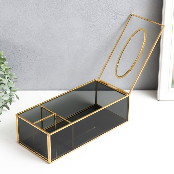 Шкатулка стекло салфетница и подставка "Затемнённая" 7,5х11,5х25,5 см
