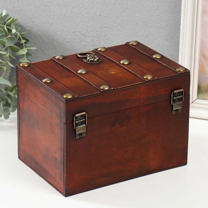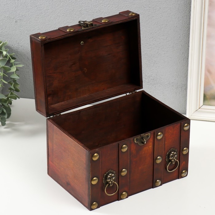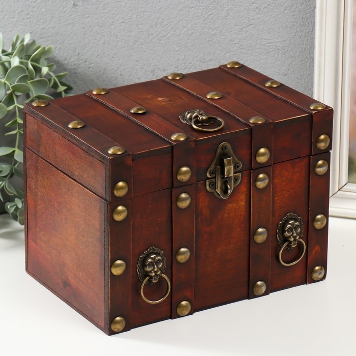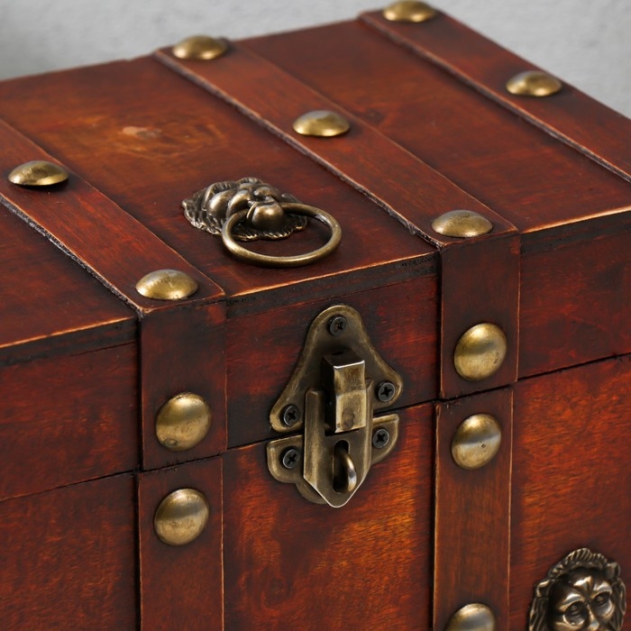 Шкатулка сундук дерево "Лев. С заклёпками" коричневая 21,8х15,5х15 см