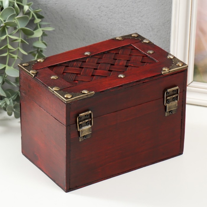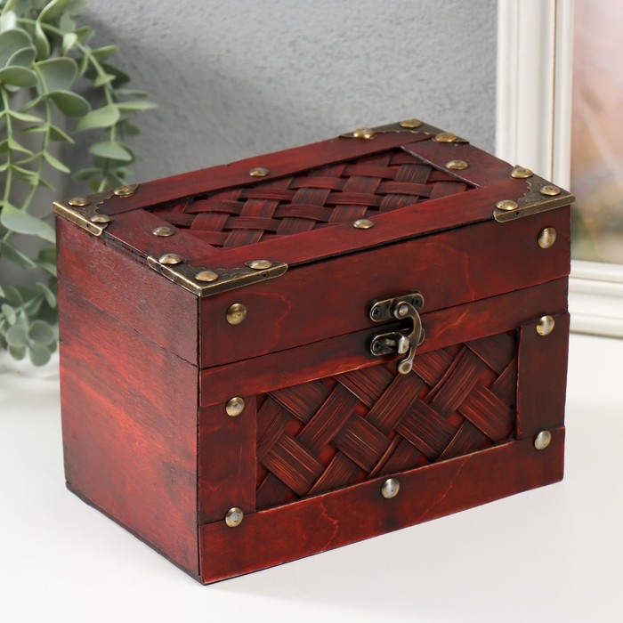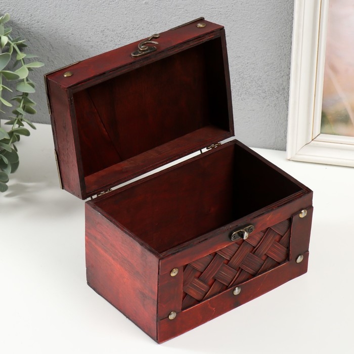 Шкатулка сундук дерево "Плетёнка. С заклёпками" коричневая 17,8х11,5х12,8 см