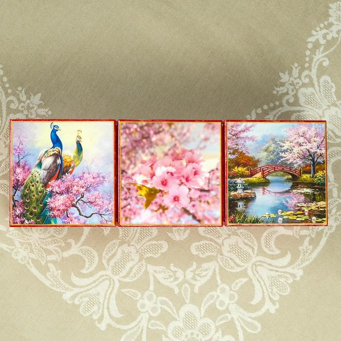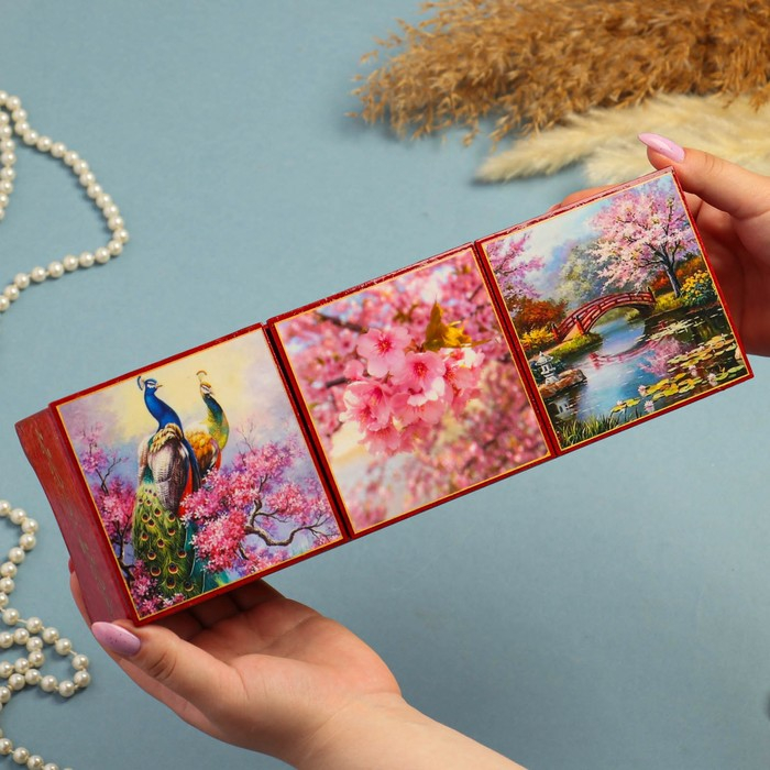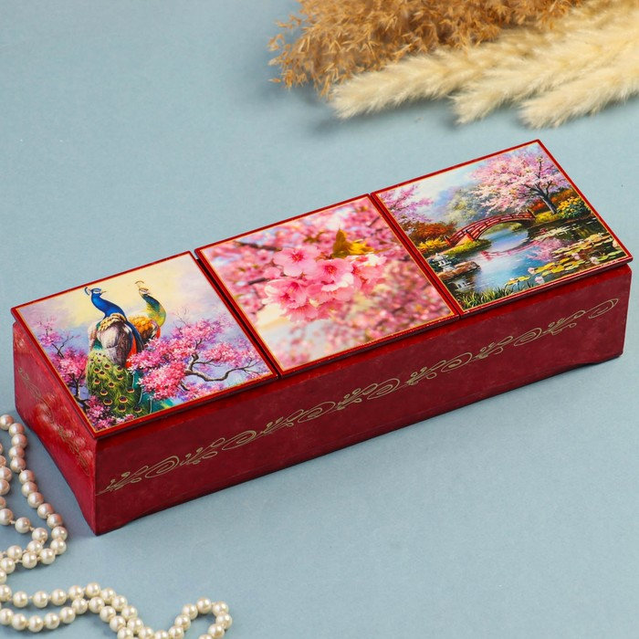 Шкатулка тройная «Сакура», розовая, лаковая миниатюра