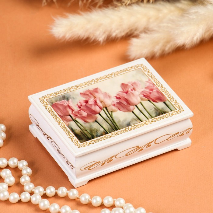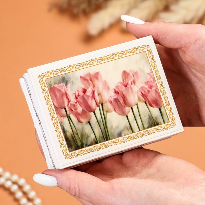 Шкатулка «Тюльпаны», белая, 8×10,5 см, лаковая миниатюра