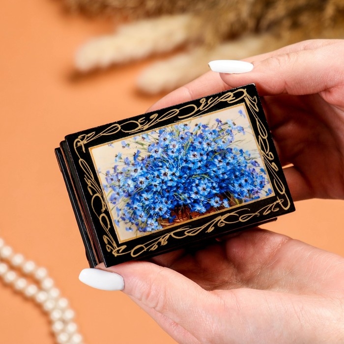 Шкатулка «Васильки», 6×9 см, лаковая миниатюра