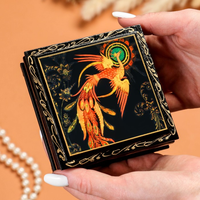 Шкатулка «Жар-птица», 10×10 см, лаковая миниатюра