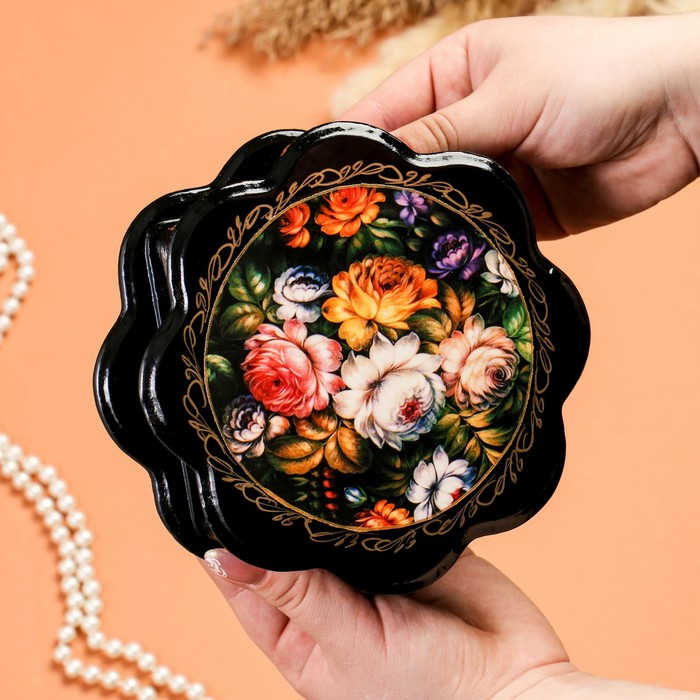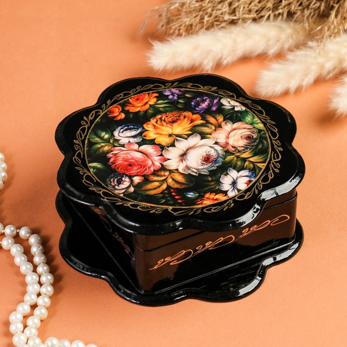 Шкатулка «Жостово», 16×16 см, лаковая миниатюра