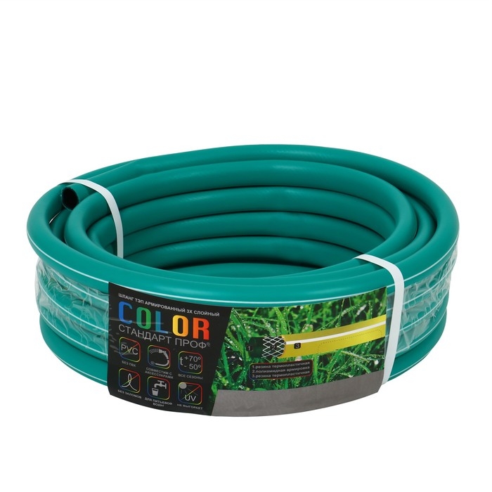 Шланг поливочный морозостойкий, ТЭП, 18 мм (3/4"), 15 м, армированный, COLOR, зелёный