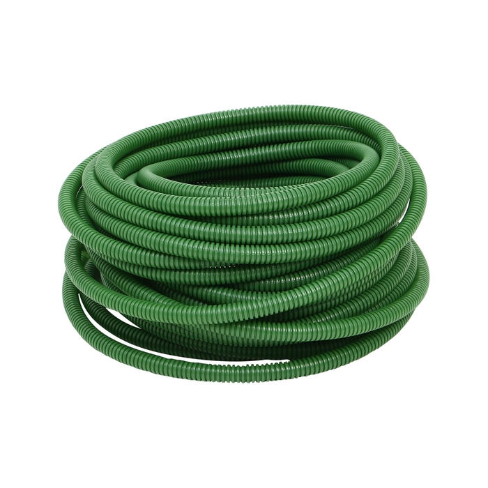 Лёгкий и гибкий гофрированный шланг из ПВХ подходит для полива садовых культур и переноса воды из большой ёмкости в вёдра. Но не оставляйте его долго лежать на солнце: он может стать твёрдым и помутнеть.
