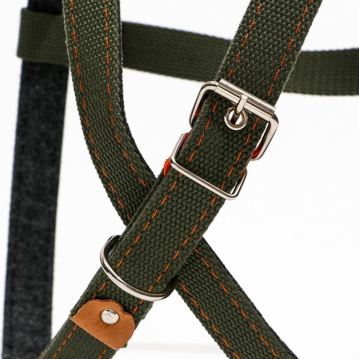 Шлейка брезентовая на фетре многоразмерная, 2,5 см, ОШ 40-60 см,ОГ 40-60 см, тёмно-зелёная