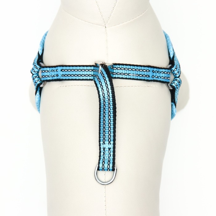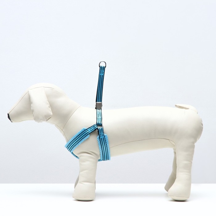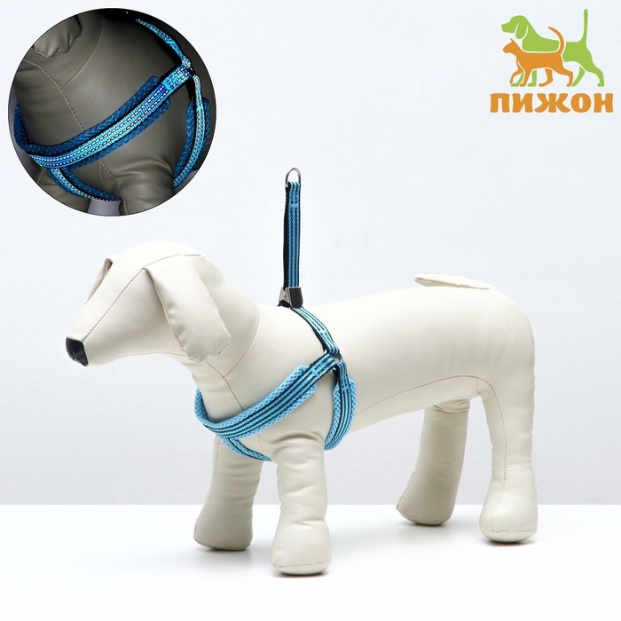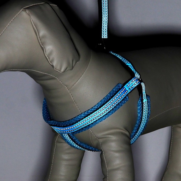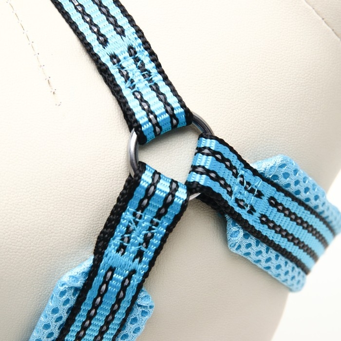 Шлейка супермягкая со светоотражающей прошивкой, размер М, обхват 32-63 см, голубая